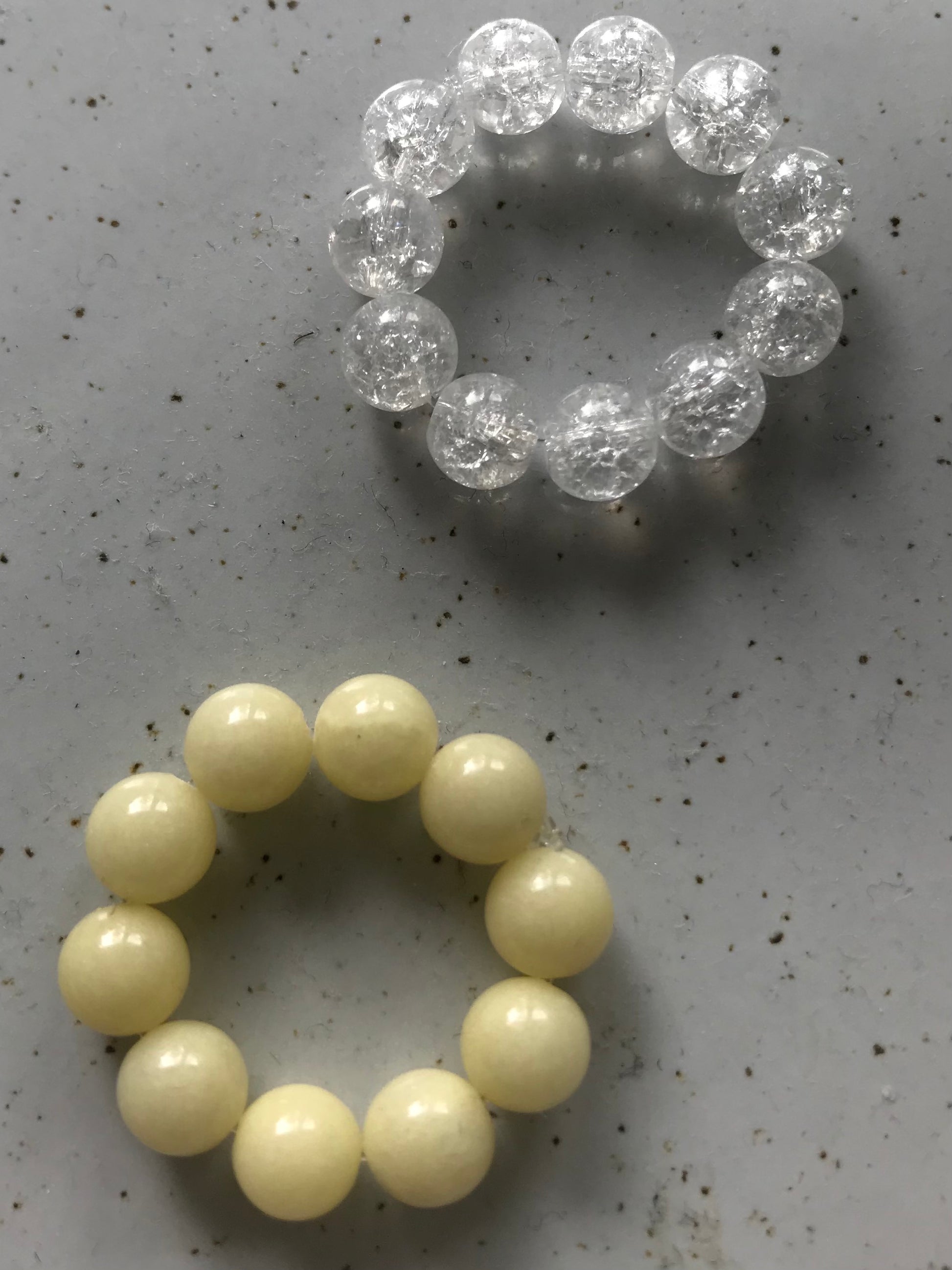 ring ,ava' is made of jade stone beads in a beautiful pastel yellow.